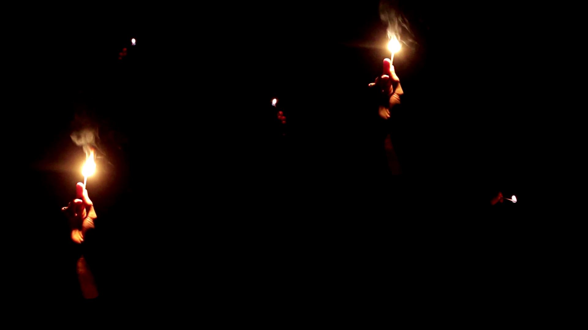 Dans la nuit, un groupe de mains dessinent un paysage à l’allumette.